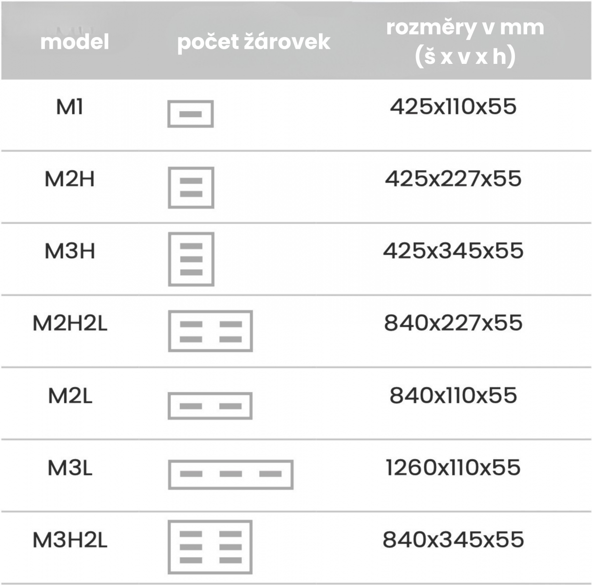 Rozměry (Š × V × D): 425 mm × 110 mm × 55 mm