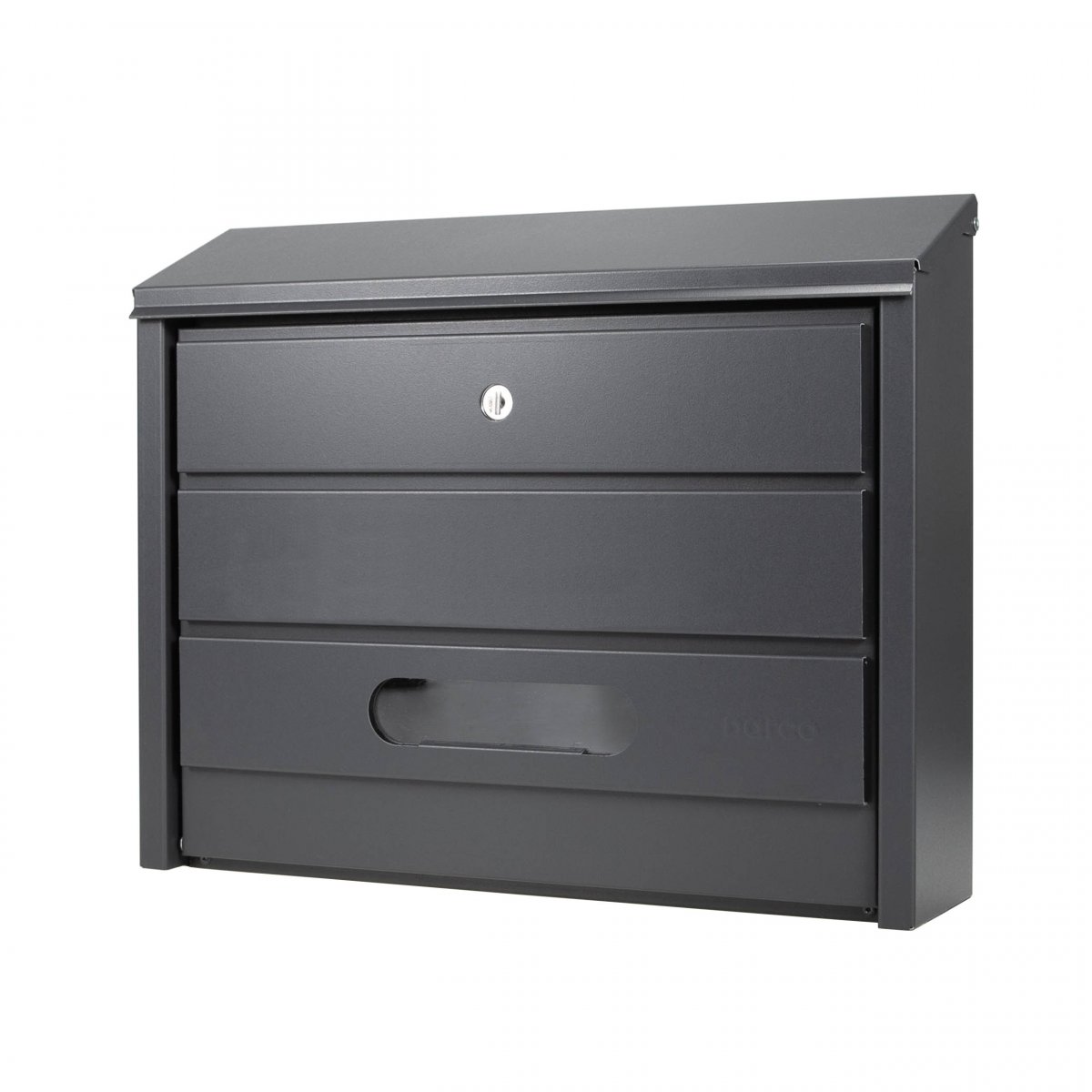 Praktická poštovní schránka v matné antracitové barvě vhodná pro venkovní i vnitřní montáž. Vyrobena z odolného akrylového plechu, který zajišťuje dlouhou životnost a odolnost vůči povětrnostním vlivům. Součástí je zámek se dvěma klíči a montážní sada.